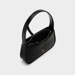 Glossy croc-embossed leather meets a sculptural gold push-lock, giving this sleek shoulder bag a confident silhouette, a sense of luxe polish, and a signature hardware moment. Tuck it against a silk slip for rooftop drinks, or carry it with a tailored blazer and denim for weekday dinners.