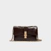 Glossy patent shines with a sculptural gold twist buckle, turning this sleek beige shoulder bag into a subtle mirror that catches city lights while the slim strap keeps movement easy. Tuck it against a satin slip for rooftop dates or sling it with wide-leg denim on coffee runs to polish every step.