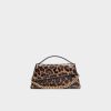 Plush leopard spots give this baguette fierce elegance, framed by leather piping and sealed with a gold bar that clicks shut, ready to swing neatly under your arm from dusk onward. Tuck it against a satin slip for cocktail hours or carry it with an oversized blazer and denim after work, finishing outfits with playful bite.