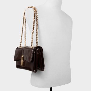 High-shine espresso patent frames a sculptural gold push-lock on this chain-strap evening bag, offering effortless after-dark polish with space for cards and keys. Tuck it under a satin blazer for rooftop dates or drape it over a little black jumpsuit at gallery nights.