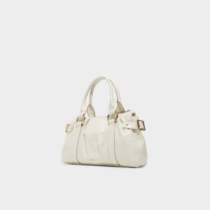 Glossy croc-emboss leather shapes this barrel satchel, accented with gold-tone hardware and a lock-and-key charm that hints at the secure turn-lock closure inside. Carry it to client meetings with a crisp blazer or sling it alongside slip dresses for evening dates to polish the look.