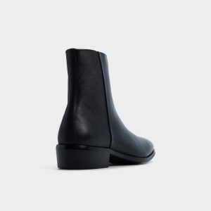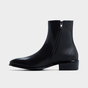 Smooth black leather in front and a textured rear panel create a subtle contrast in this ankle boot, while a side zip offers quick access and a low stacked heel ensures easy movement. Anchor slim dark denim for evening meet-ups or polish tailored trousers on office days-its squared toe finishes each look sharply.