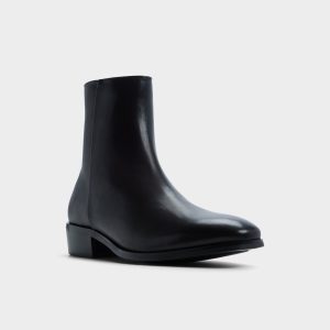 Smooth black leather in front and a textured rear panel create a subtle contrast in this ankle boot, while a side zip offers quick access and a low stacked heel ensures easy movement. Anchor slim dark denim for evening meet-ups or polish tailored trousers on office days-its squared toe finishes each look sharply.