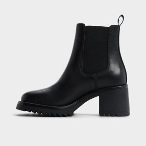 Rugged lug sole bites pavement under sleek black leather, while a chunky block heel and stretchy Chelsea panels offer pull-on swagger for a city-ready stride that can keep up from dawn to dusk. Pair with tailored trousers for presentation days, or ground a cozy sweater dress when markets call for edge.