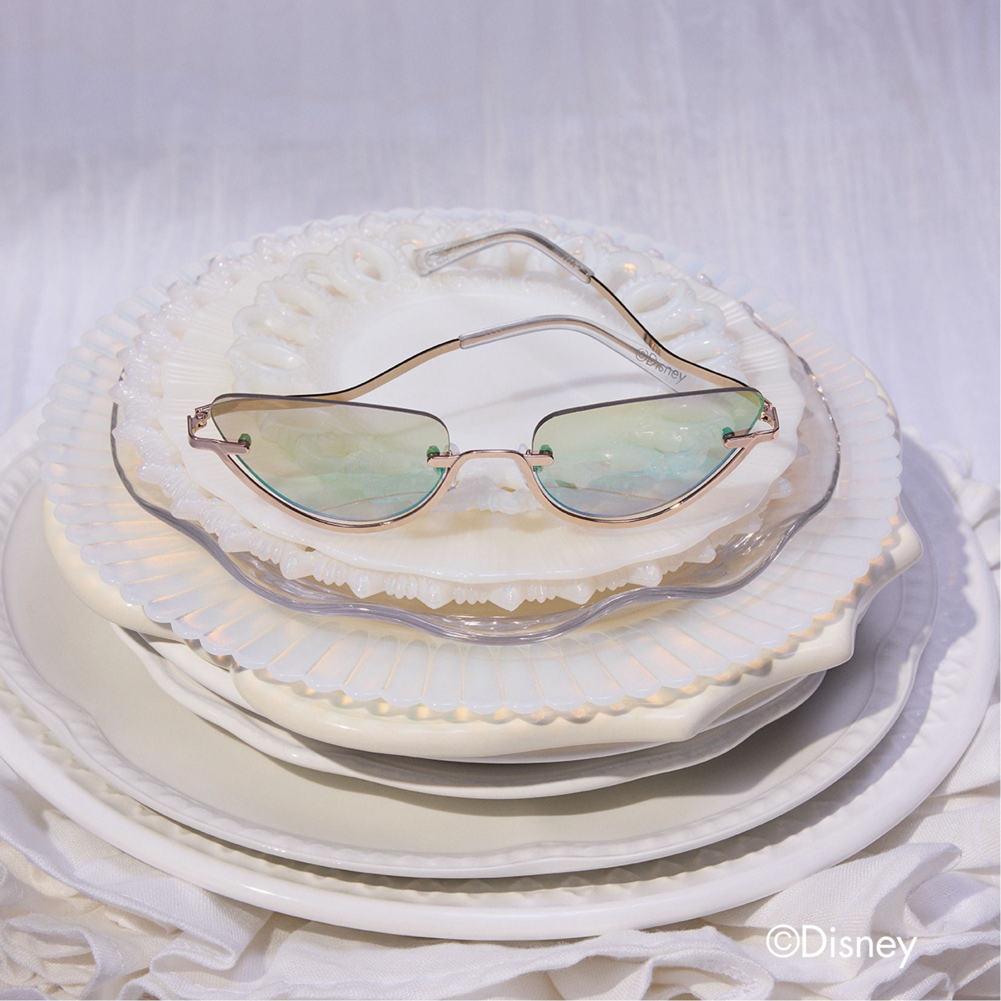 Channel your inner mermaid with these enchanting Ariel-inspired sunglasses. Featuring gold-framed cat-eye lenses, these sunglasses come in a gold shell case for that dreamy under-the-sea glamour.