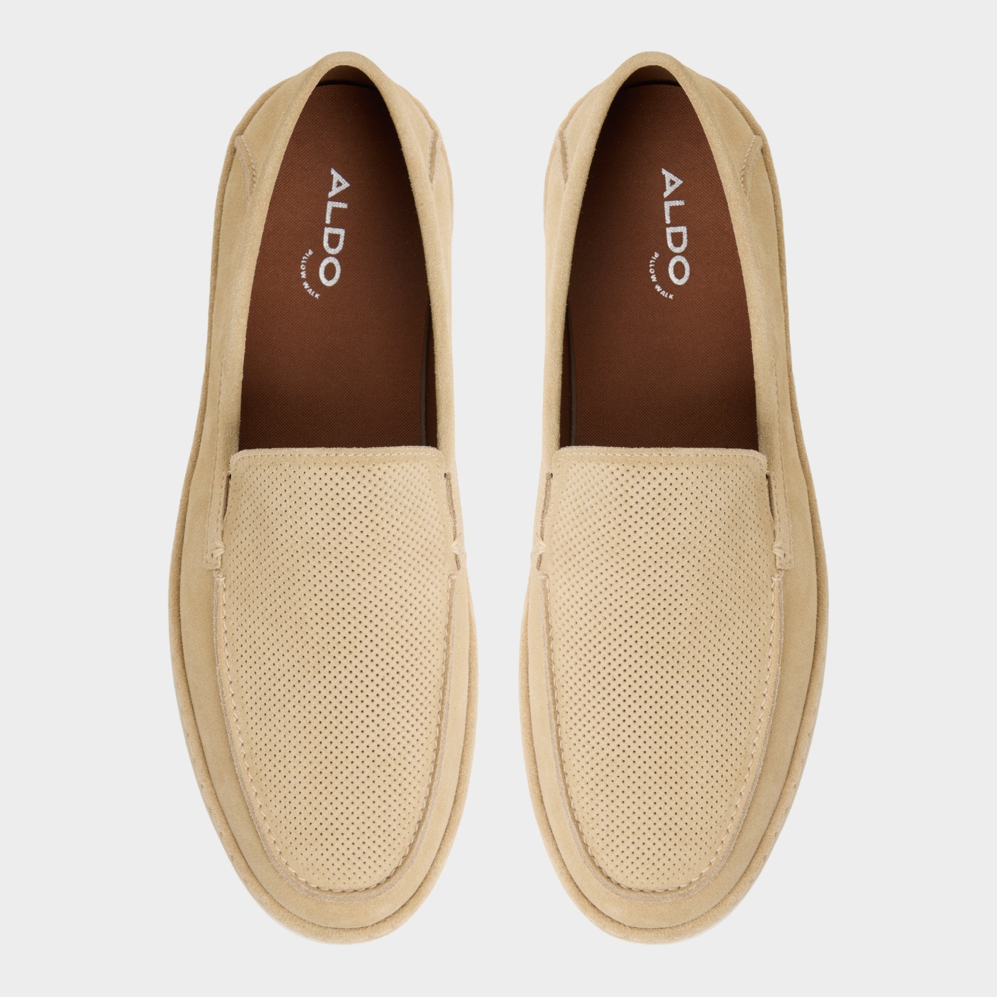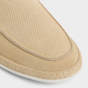 Beige suede shapes a refined slip-on loafer, where soft texture meets a cushioned cup sole that keeps every step easy from sunrise meetings to after-hours dinners for city days and weekend wander. Pair it with tapered denim for office lunches, or anchor it under linen shorts for beachside strolls.