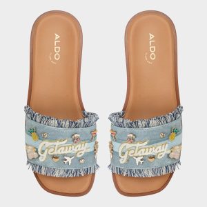 Perfect for beach days or brunch dates, these denim slides with frayed edges and playful embellishments will bring a little vacation vibe to every step you take.