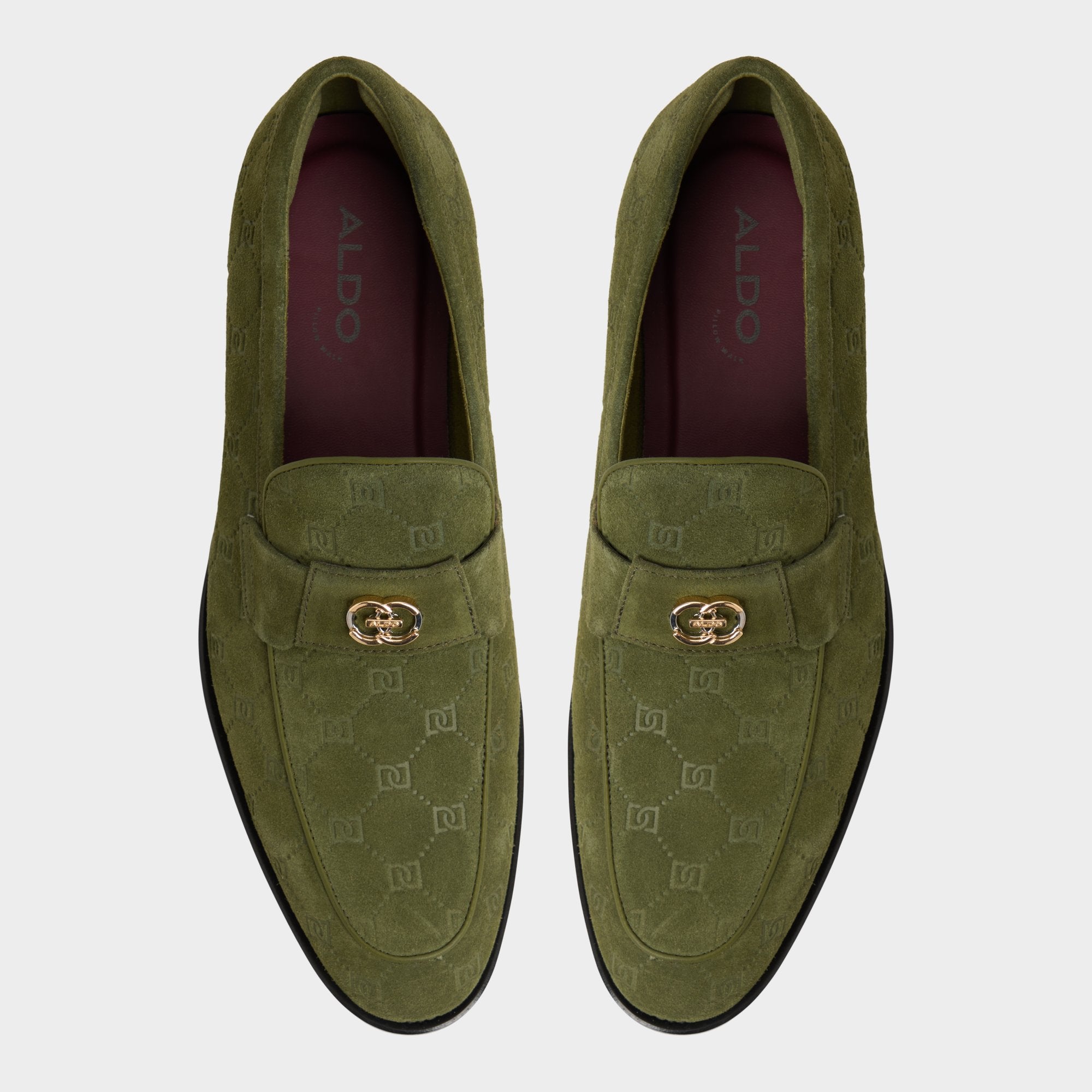 Olive suede with subtly embroidered monograms radiates a cool confidence, seamlessly complemented by polished gold chains and refined soles, offering an understated elegance from your first steps to late-night adventures. Pair it with fitted jeans for casual meet-ups or dress it up with dark trousers for evening gatherings-either way, it leaves a lasting impression.