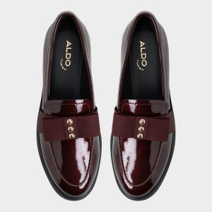 Liquid-shine burgundy patent revives the loafer silhouette, and a grosgrain bow edged with metallic hardware adds understated attitude, all on a cushioned rubber outsole that keeps strides steady from brainstorm to platform dash. Pair with tailored trousers for client catch-ups, or swap into cuffed denim when art-opening plans morph into night-market wanders.