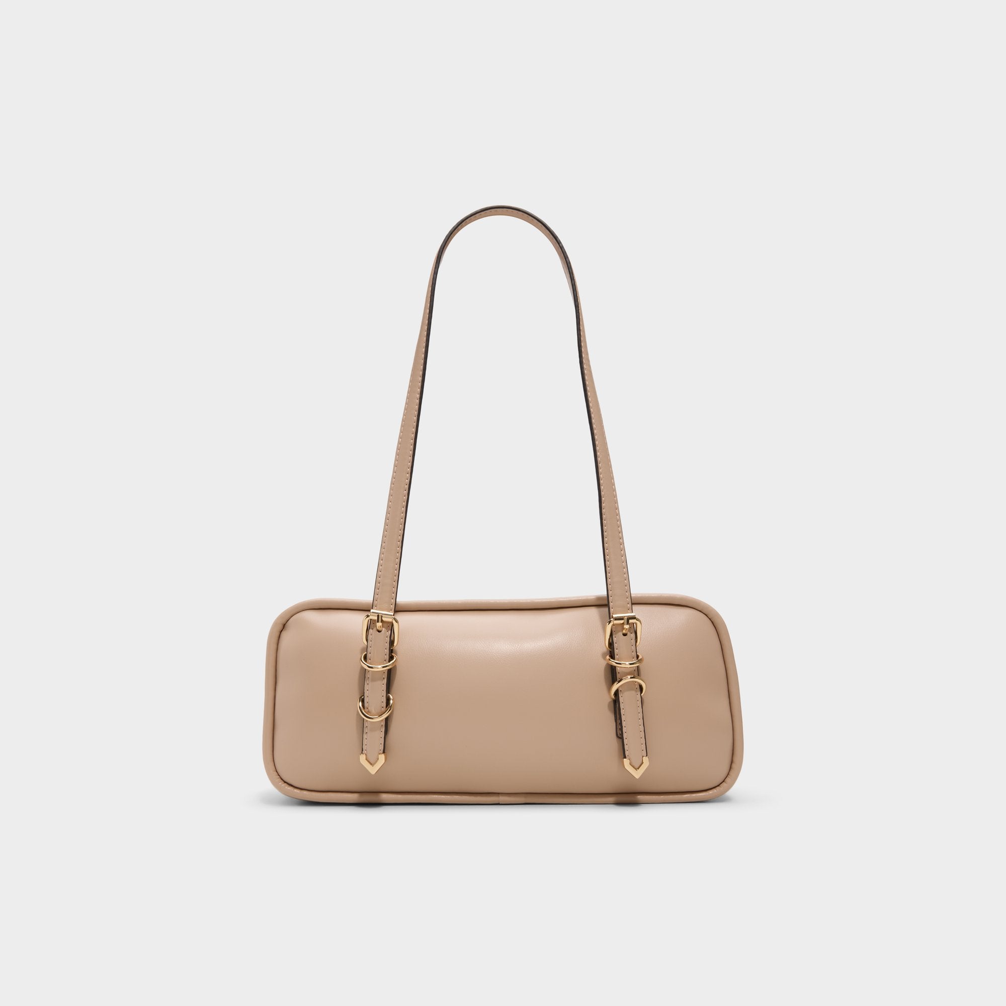 Smooth as latte foam, this slim rectangular shoulder bag taps into Y2K nostalgia with buckle-trimmed straps and buttery beige leather, holding essentials behind its neat zip top. Tuck it under a blazer for coffee outings or pair it with a slip dress and heels on date nights to complete the ensemble.