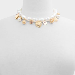 Baroque-style glass beads shimmer like moonlit tide pools alongside gold leaves, blossoms, and crimson charm on a strand that catches the eye with every movement. Layer it over a camisole for drinks or top off cardigans during coffee runs, letting the beadwork finish the look.