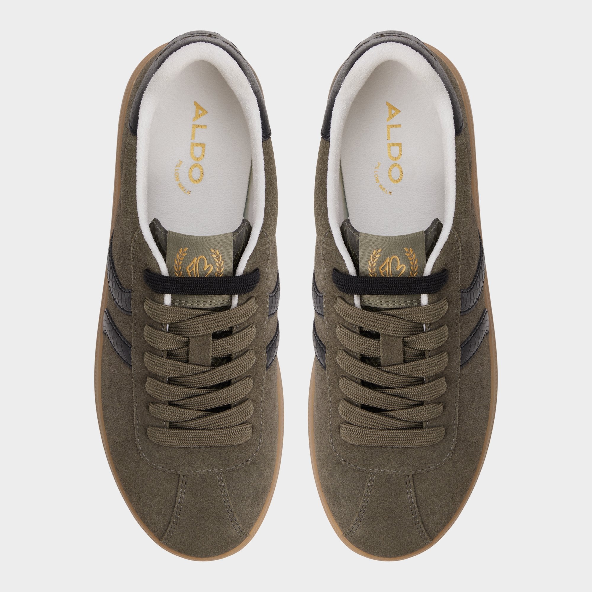 Olive suede takes on a relaxed vibe with glossy snakeskin stripes adding a touch of shine, all set on a retro gum cup sole and cushy lining for soft steps from morning commutes to evening outings. Pair with cropped cargos for weekend markets, or switch to a slinky slip skirt when coffee dates extend into art-show nights.