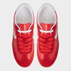 Punchy scarlet suede collides with sporty fabric panels as a crisp chevron stripe flashes across the side on top of a cushioned cupsole that softens every errand sprint and playlist-powered detour. Pair with bike shorts for coffee commutes or swap in wide-leg trousers when after-work hangs call for laid-back polish.