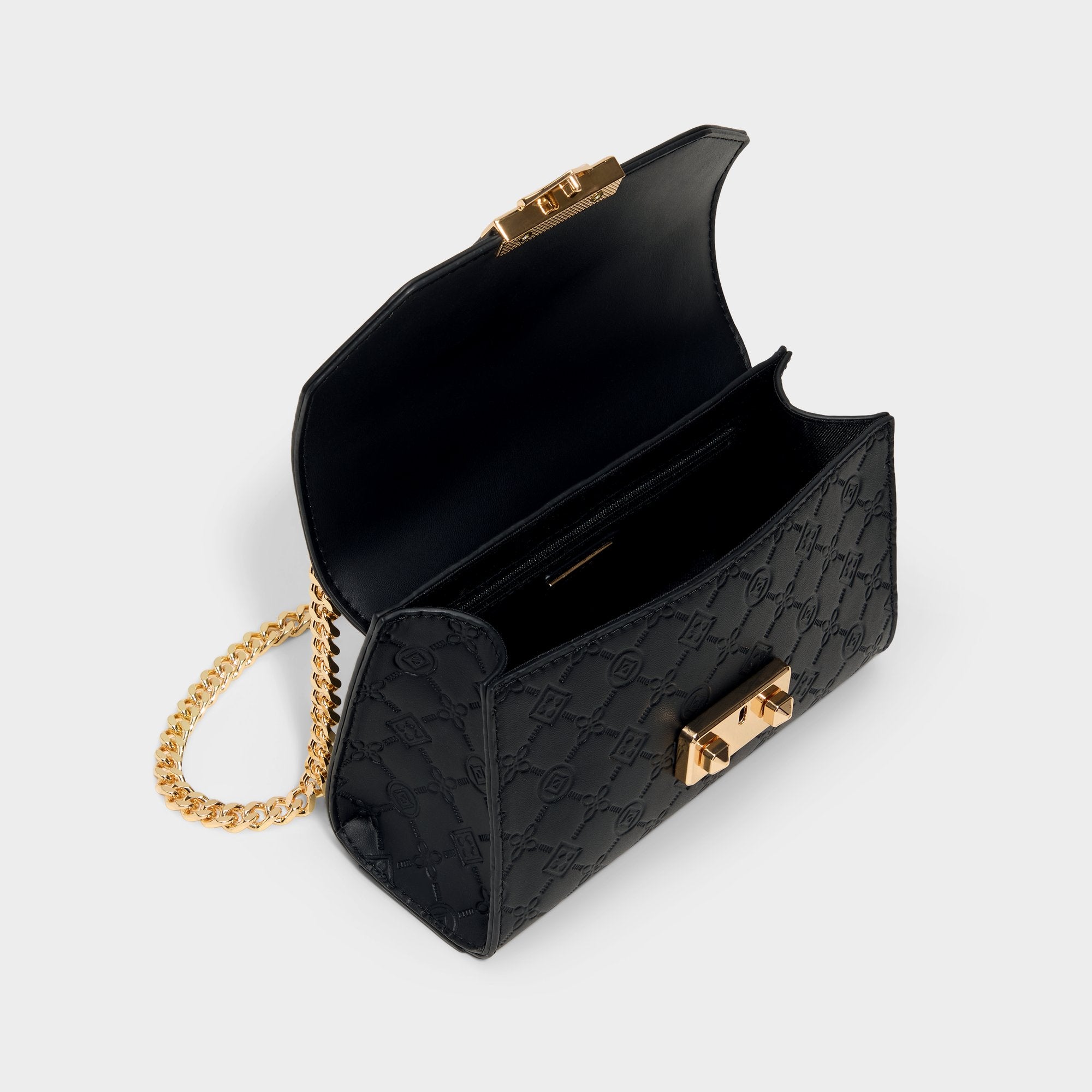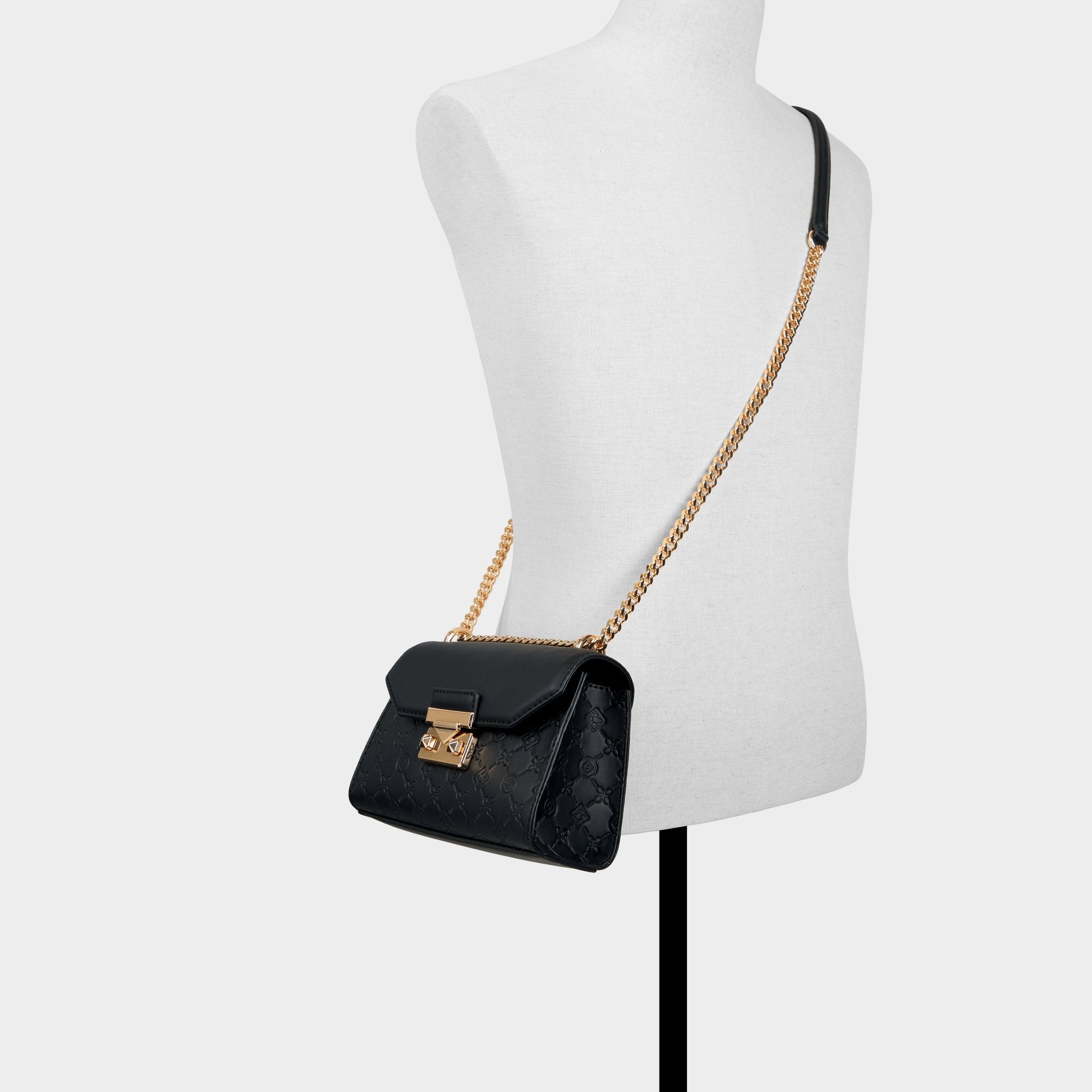 Midnight-black quilted syntheticleather frames a geometric flap crowned by a bold gold push-lock, giving this structured crossbody city-polish with a whisper of glam that travels from desk to dinner. Carry it with a satin slip for rooftop dinners, or sling it over blazer-and-jeans for city coffee runs.