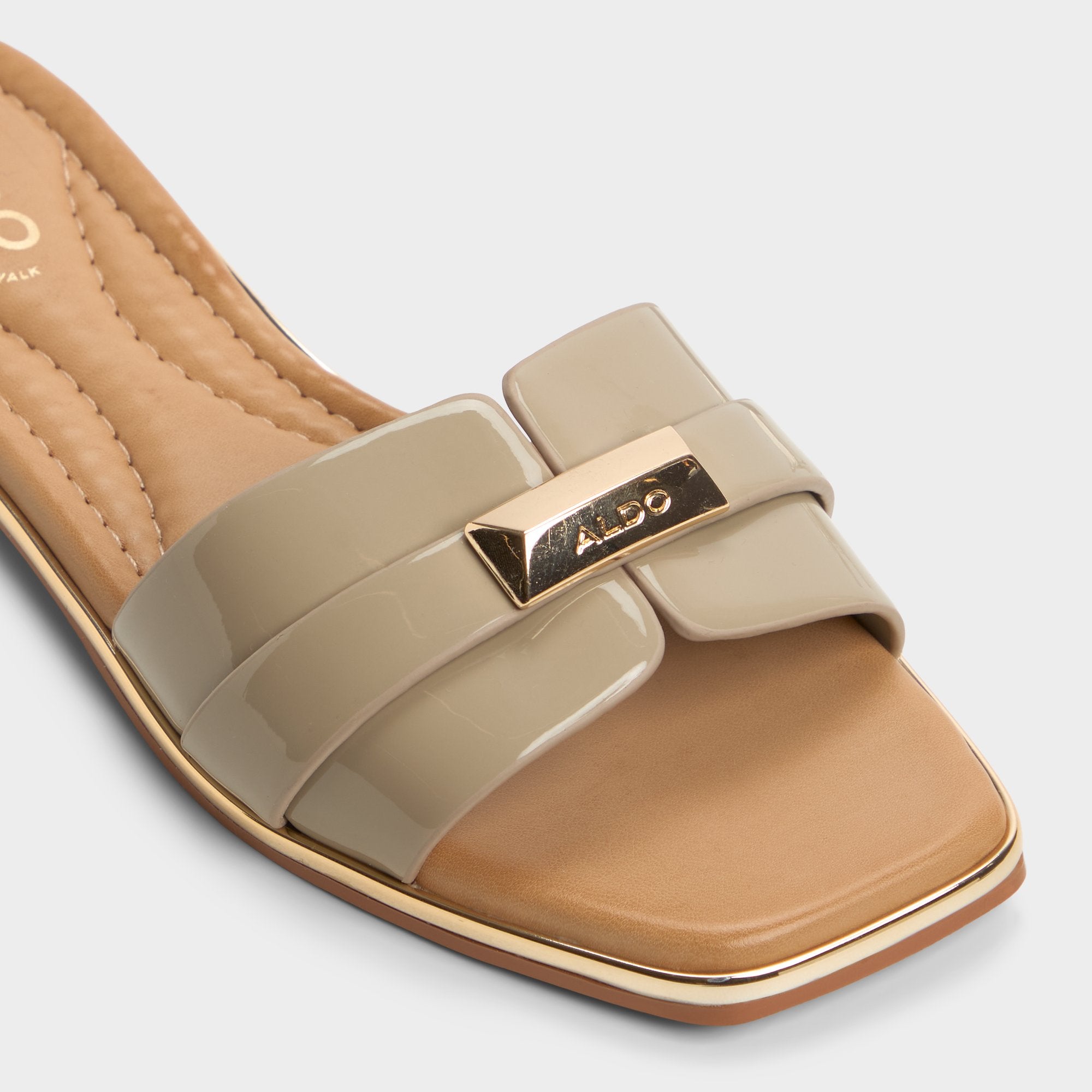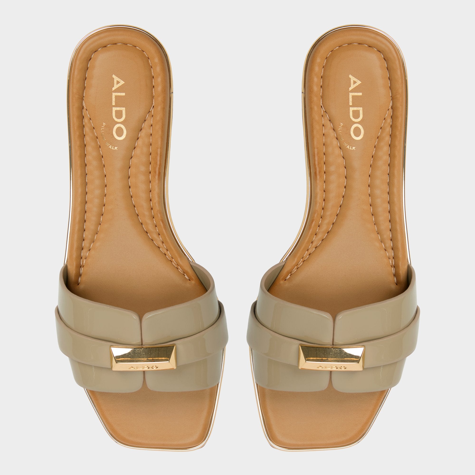 Distinguished by chic metal detailing and a modern square toe, these flat sandals were made for beaches, brunches and BBQs.