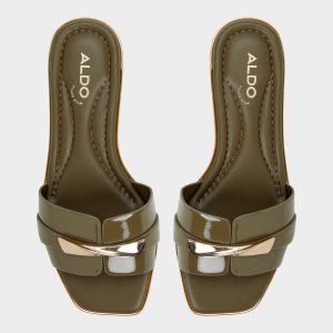 Sunlit patent leathers trace bold, wide bands trimmed with gold-tone hardware, turning a laid-back sandal into a statement of evening-ready polish and sun-drenched confidence for city strolls and rooftop sunsets. Pair with cropped linens for market days, or slip under a flowy midi for sunset cocktails and street-style gallery nights.