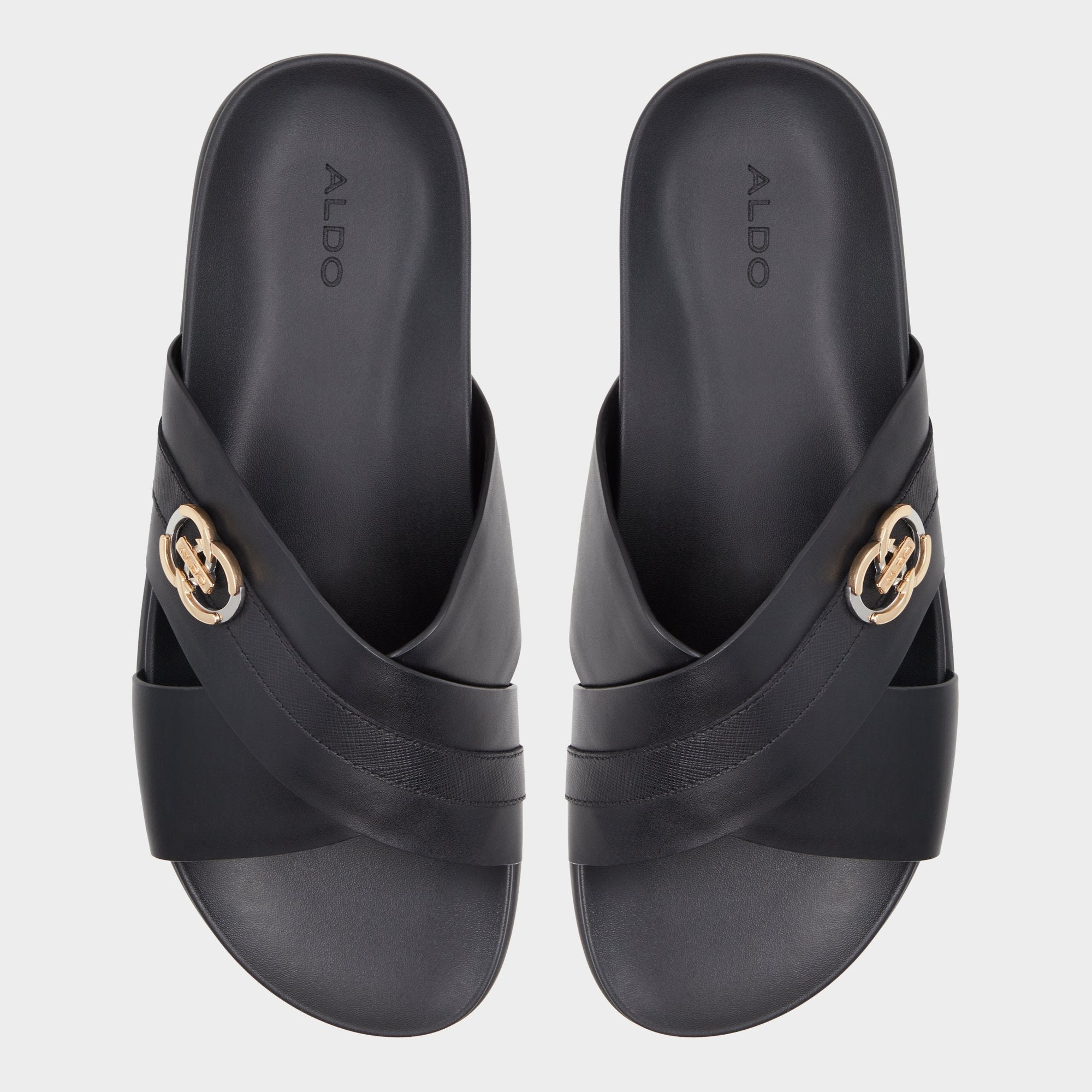 Who said slides had to be boring? These easy on, easy off sandals certainly aren’t courtesy of a chic metal ornament and a criss-cross design.