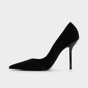 Ink-black suede drapes over pointy toes and a sky-high stiletto, delivering a confident height shift and a sleek silhouette, while plush insoles cushion every step from work to night out. Pair with tailored trousers for boardroom polish, or slip into satin minis for dinner downtown and a midnight rooftop moment.