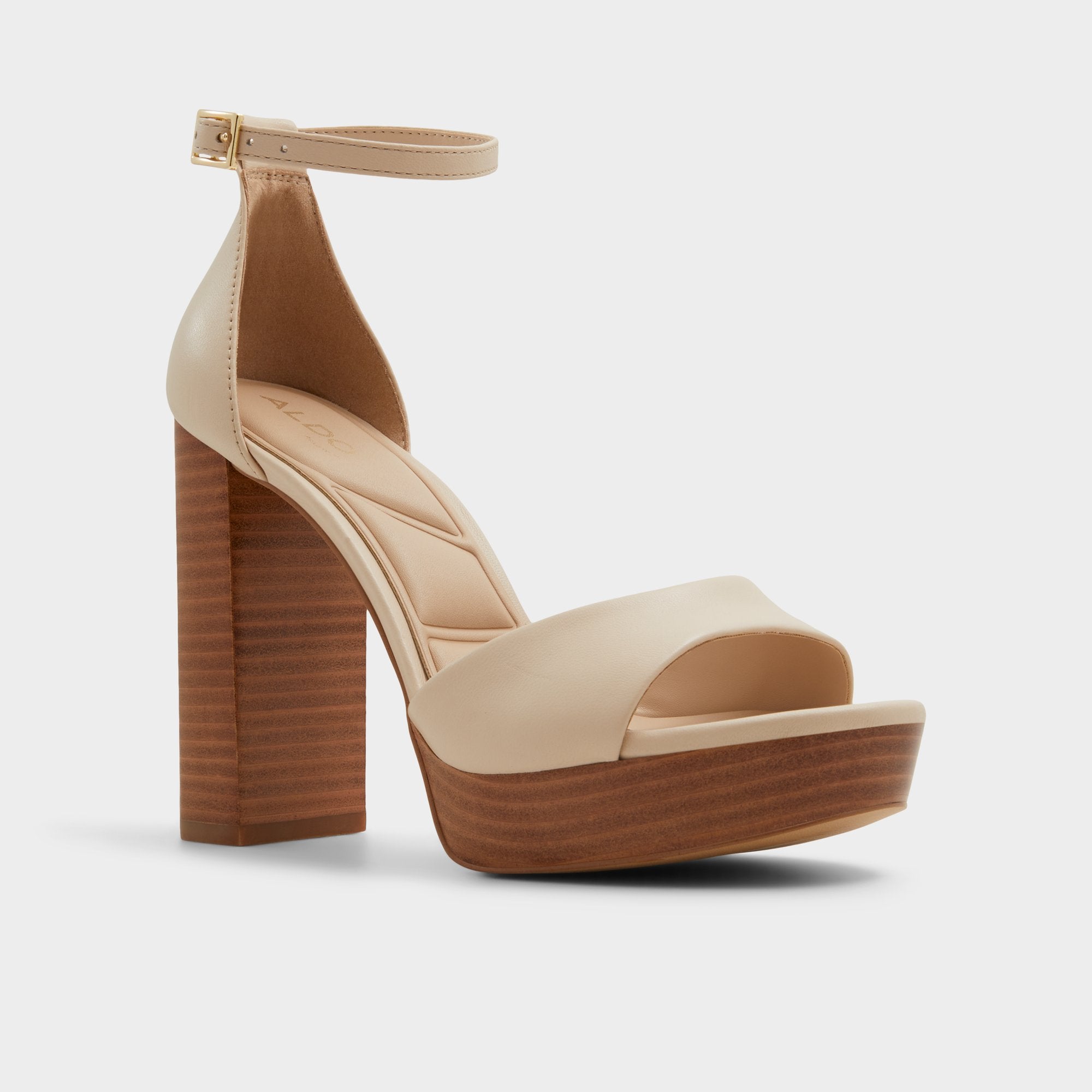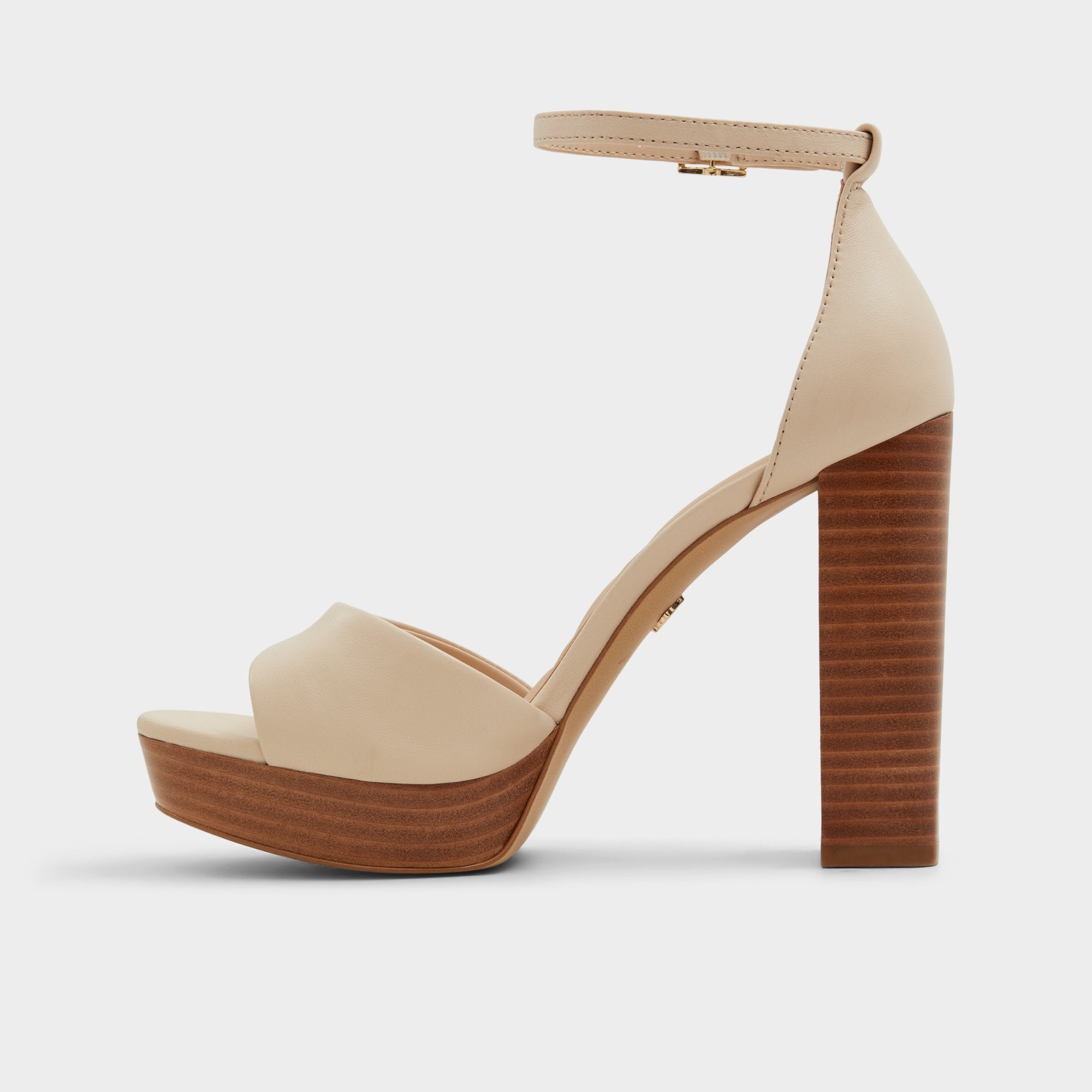 Elevate your looks with these iconic ankle strap nude heeled sandals, now with a higher platform for extra height.