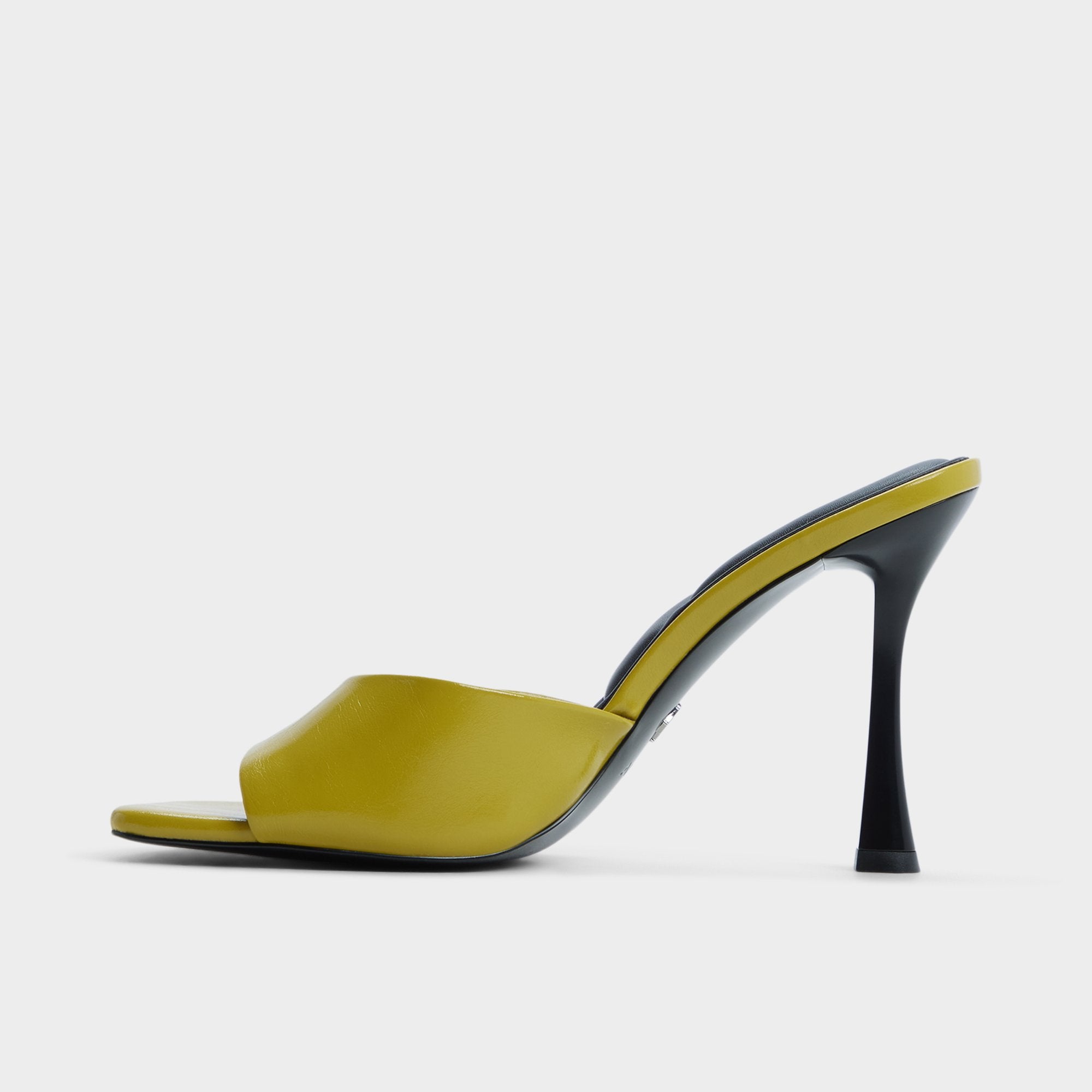 Liquid-shine lime patent leather catches city lights as a sculpted flared-stiletto heel lifts every step, while a square toe keeps the silhouette modern and easy to wear from early meetings to after-hours strolls. Pair with tonal suiting for presentation mornings, or swap in a little black dress when twilight rooftops call.