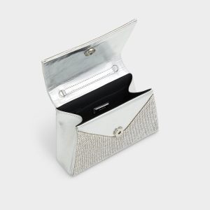 In case of a gala, wedding, or cocktail party, this bedazzled top handle bag adorned with shimmering rhinestones and chic hardware accents is the ultimate accessory to elevate your look.