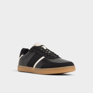 Retro white racing stripes slice through black leather and nylon panels, hitting a sweet spot between sport and street, while a springy gum cupsole cushions quick city pivots all day long. Anchor tapered joggers for Saturday pick-up games or roll with cropped chinos at patio lunches-the clean profile plays both halves.