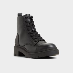 Black leather lace-up combat boots fuse rugged edge with city-smart polish, the chunky lug soles delivering sure footing for damp sidewalks and late-night detours, while a streamlined silhouette keeps the look versatile from work to after-hours. Pair with plaid minis for concerts, or ground a pared-down tee and relaxed pants for city-style commutes.