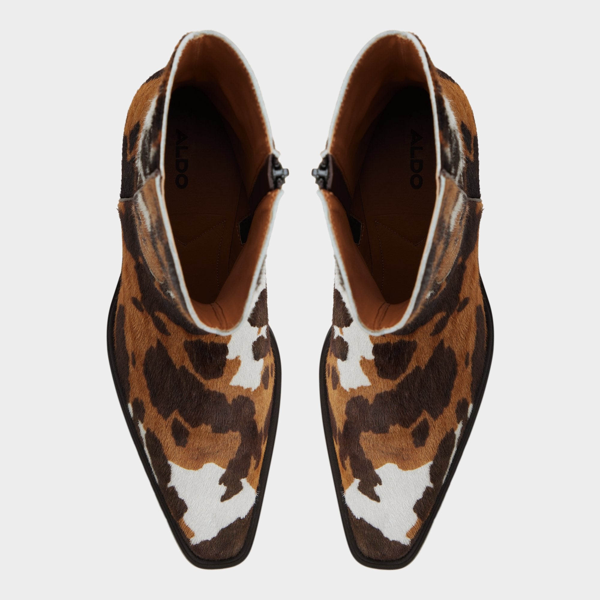 Cow-print calf hair wraps this boot with attitude, while embroidery adds detail and a low-block heel keeps silhouettes clean for city days and weekend nights, making a statement on every city street. Pair with rolled denim for nights out, or with tailored wool trousers for gallery openings, city-ready and versatile, made to turn heads.