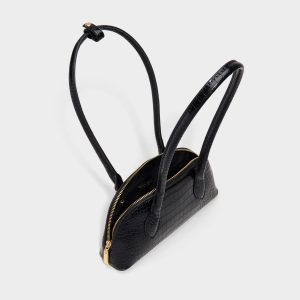 Croc-embossed leather forms this sleek demi-lune silhouette, closing securely with a vintage snap frame closure that keeps essentials in stride while the glossy surface catches the light, adding quiet luxury to everyday moments. Carry it with tailored trousers for coffee catch-ups, or sling it over satin for after-dark gigs to finish the look.