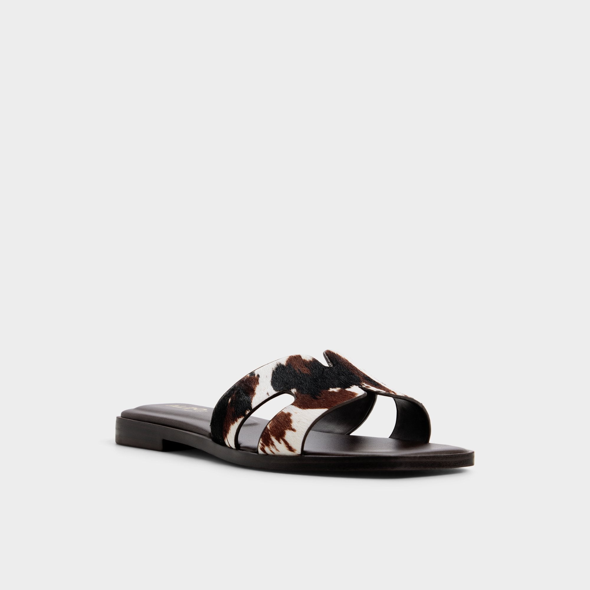 Spotted haircalf cow-print adds fearless flair to these cut-out slides, and a supple leather footbed cushions every step, keeping comfort chic from sunlit sidewalks to candlelit dinners. Pair with white denim for brunch, or slip beneath a sundress for patio strolls and sunset dates, ready for city nights.