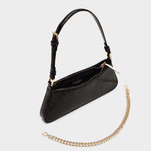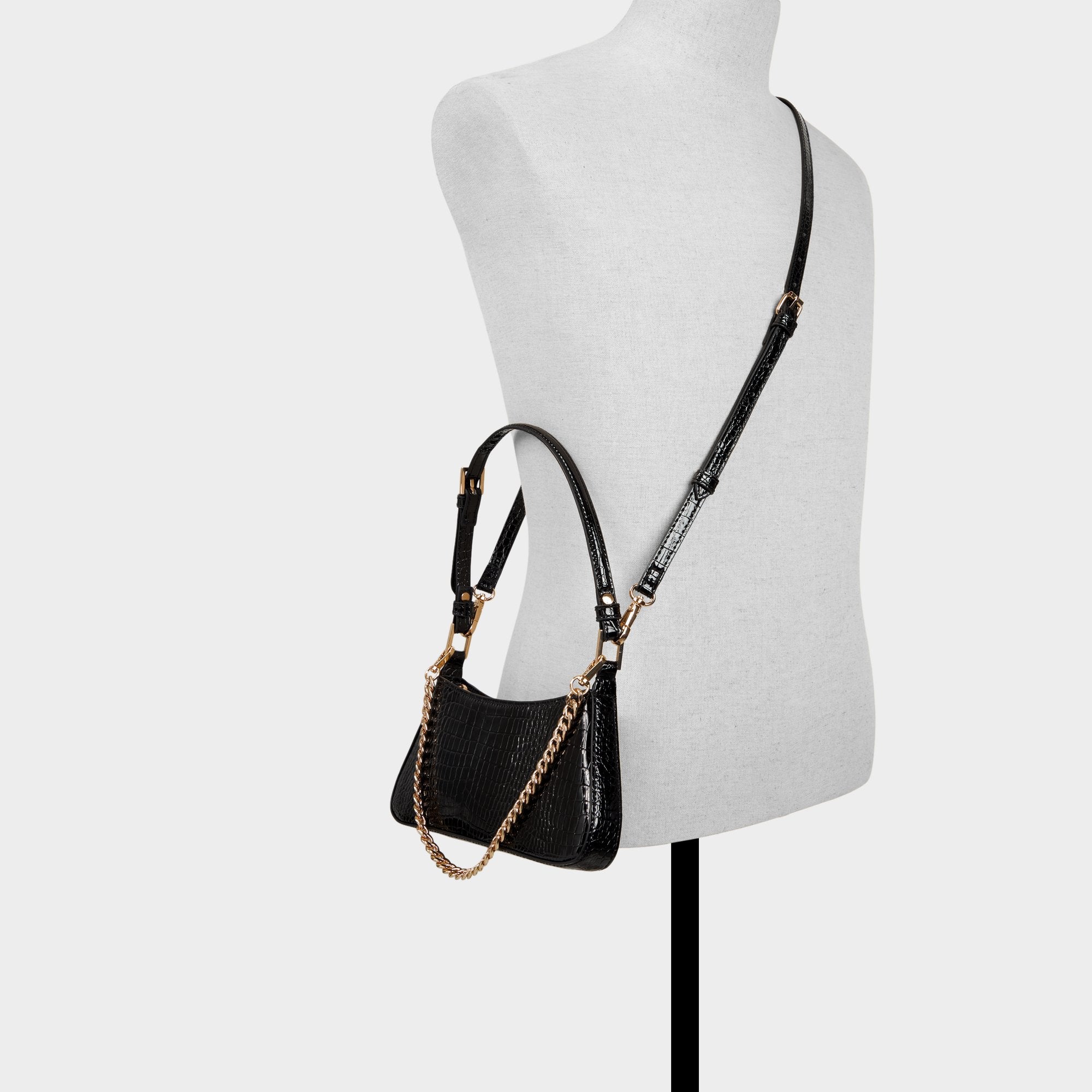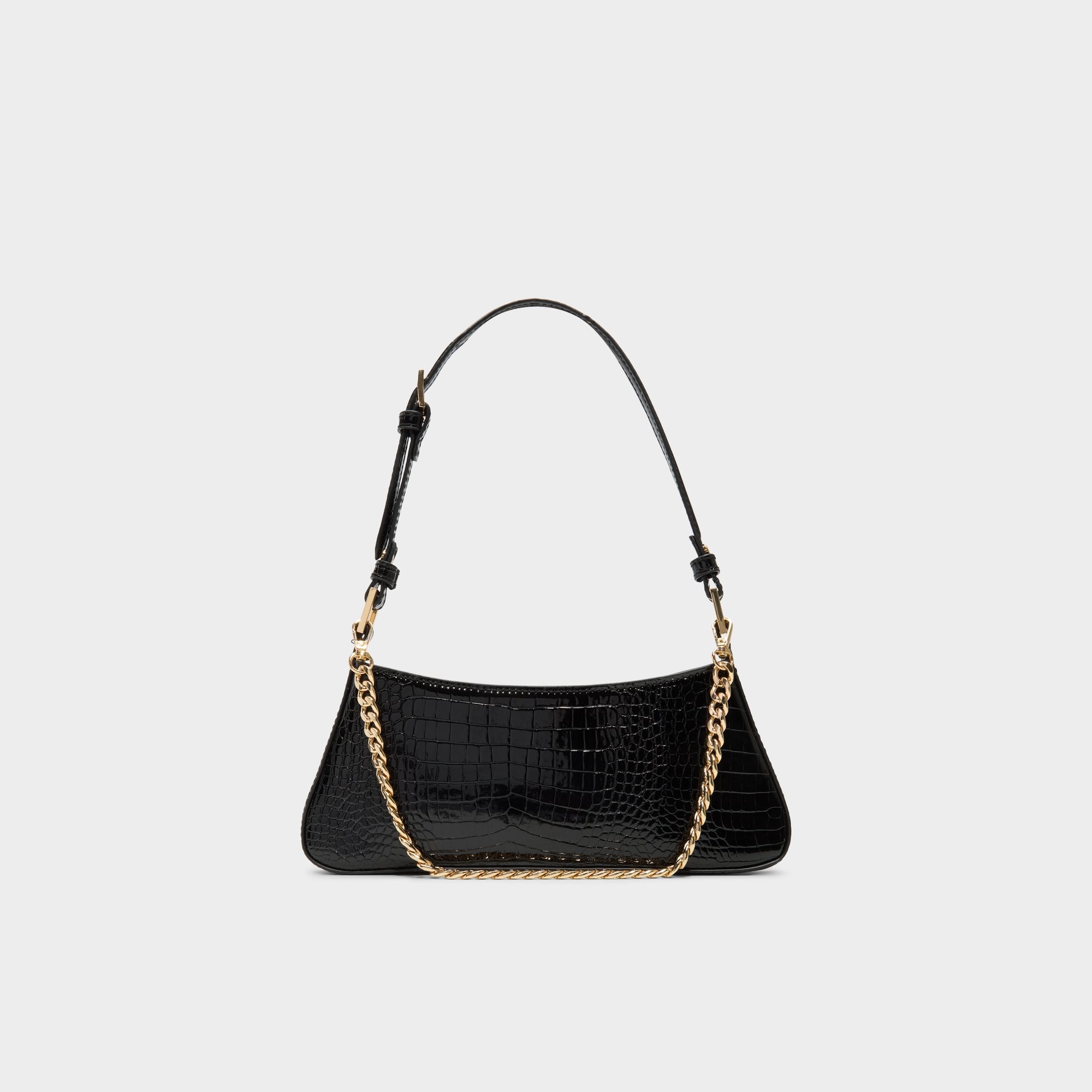 Glossy croc-embossed leather catches the light along a sleek baguette silhouette, while an interchangeable handle—thanks to a detachable gold chain—lets you shift from shoulder carry to hands-free ease in a heartbeat. Sling it with silky dresses or tuck under your arm during late-night food runs.
