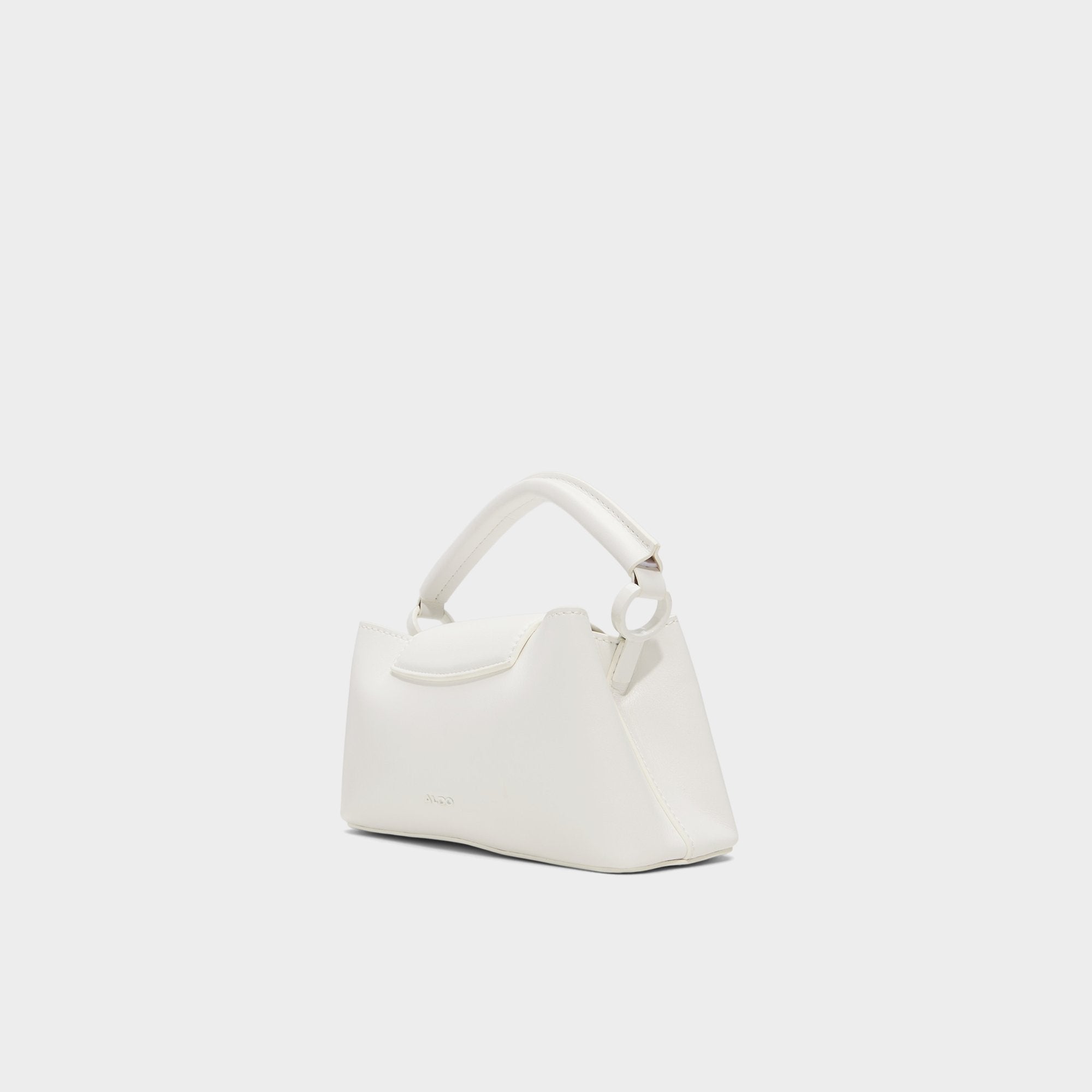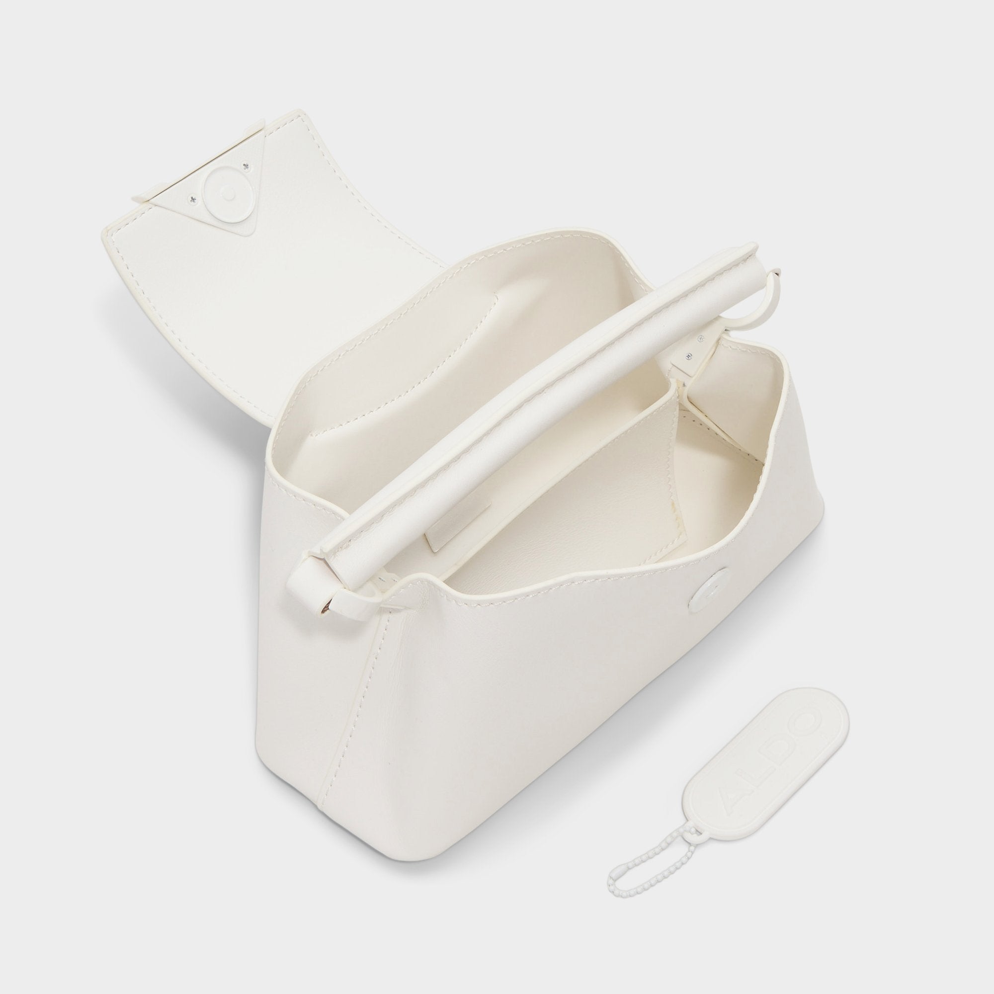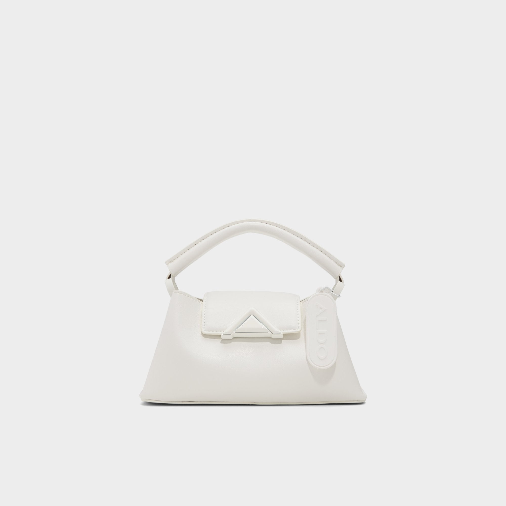 A pure-white top-handle mini exudes modern polish with a triangle-accent flap and matte hardware, while a stitched luggage tag hints at travel dreams kept close to heart for days that swing from cafe chats to rooftop plans. Carry it with cropped denim for cafe catch-ups, or pair it with a satin slip for rooftop evenings.