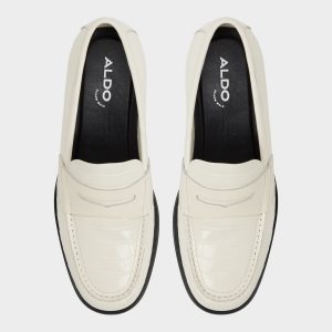 Warm cream croc-textured leather gives these penny loafers a subtle confidence, while a supple leather lining and slim rubber outsole make every step smooth from office meetings to evening socializing. Pair them with a navy suit for those key presentations or go casual with cuffed chinos at gallery visits-the croc embossing adds a touch of style naturally.