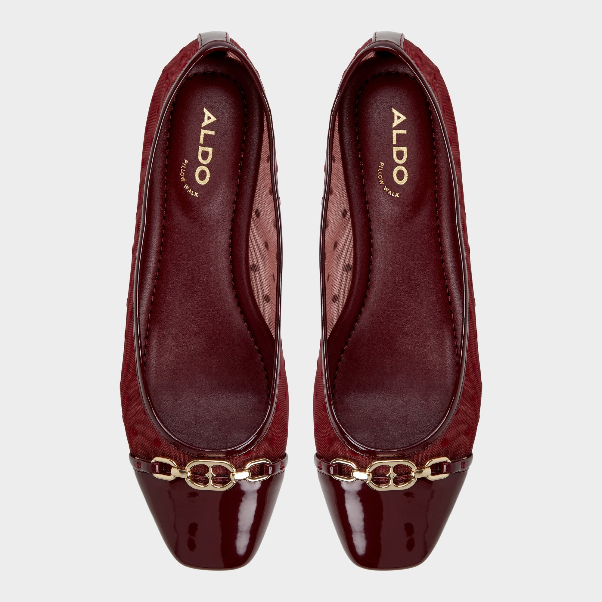Sheer polka-dot mesh offers glimpses of skin beneath a glossy patent toe and gilded bow that sharpen the ballet flat, complemented by a cushioned leather sole for quiet steps on marble hallways. Pair with tailored cigarette pants for client lunches, or slip beneath a velvet mini when elegance is needed without heels at gallery openings.