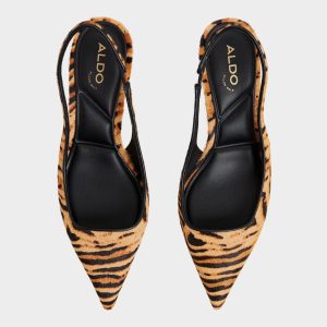 Tiger-print haircalf cloaks razor-pointed toes in a sleek silhouette, while elastic slingbacks keep the look easy from city sidewalks to after-dark dinners as you glide through morning meetings, coffee runs, and sunset strolls. Pair with tailored trousers for Monday briefs, or slip under a midi dress for rooftop drinks as dusk turns electric.