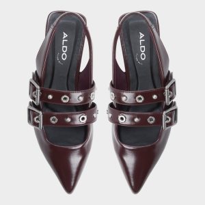 Sleek wine-hued leather meets twin polished buckles on a pointed slingback flat, offering quiet edge and day-long ease with cushioned lining and a barely-there heel that keeps strides smooth from brainstorm huddle to gallery detour. Pair with tailored trousers for pitch days, or slip in under a skirt when date-night streets call.