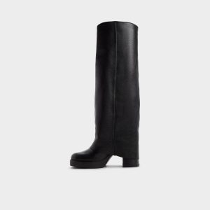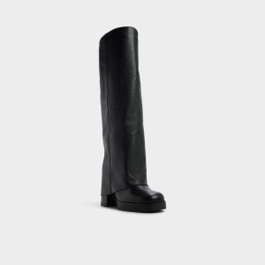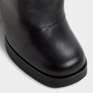 Supple black leather stands tall in a clean, columnar silhouette atop a sturdy block heel with a subtle platform, delivering effortless lift and quiet authority as you glide through city days from desk to dinner. Pair with knit minis for rooftop cocktails, or with wide-leg tailoring for confident presentation mornings.
