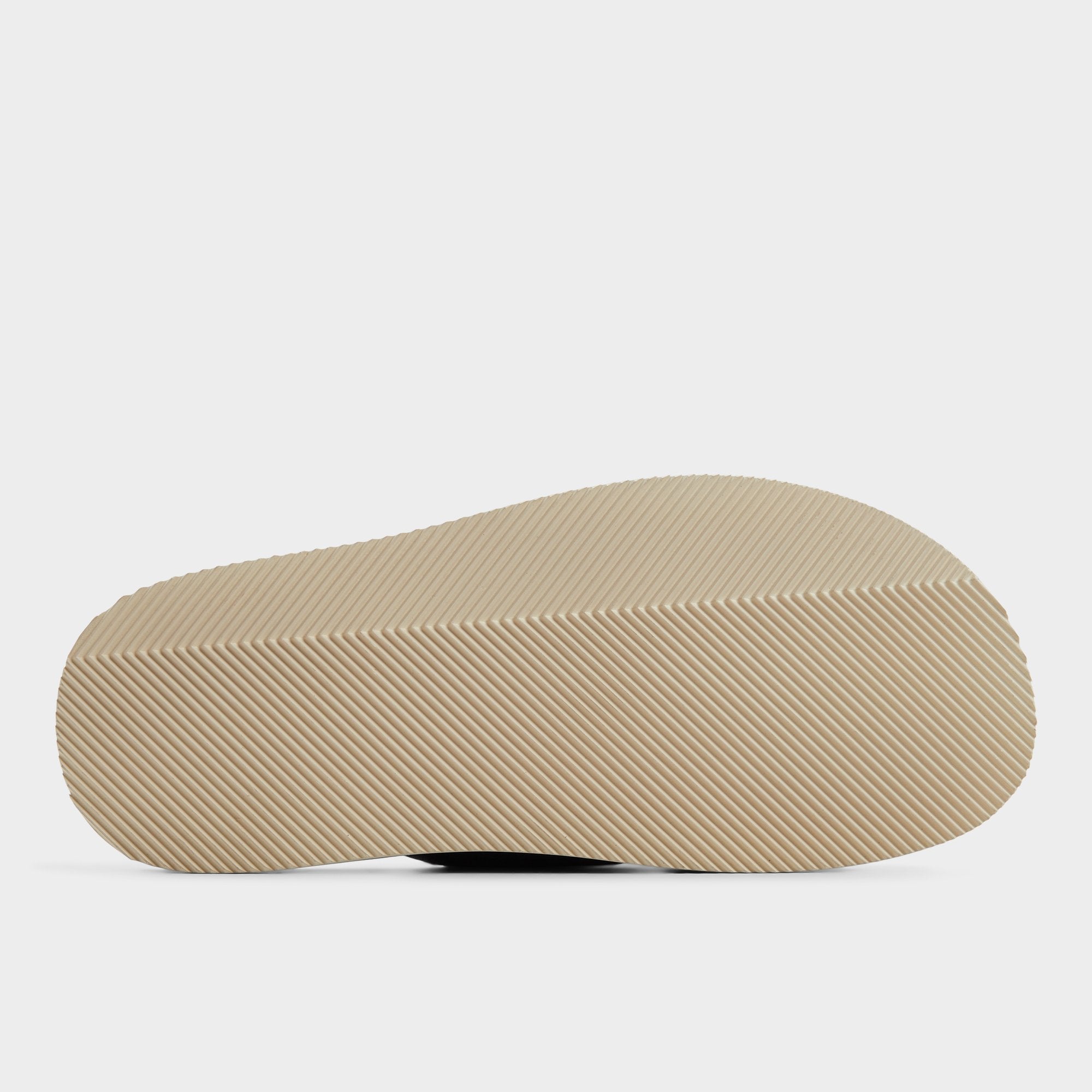 These sleek slides with with wide crossed straps will add a contemporary touch to your warm-weather wardrobe.