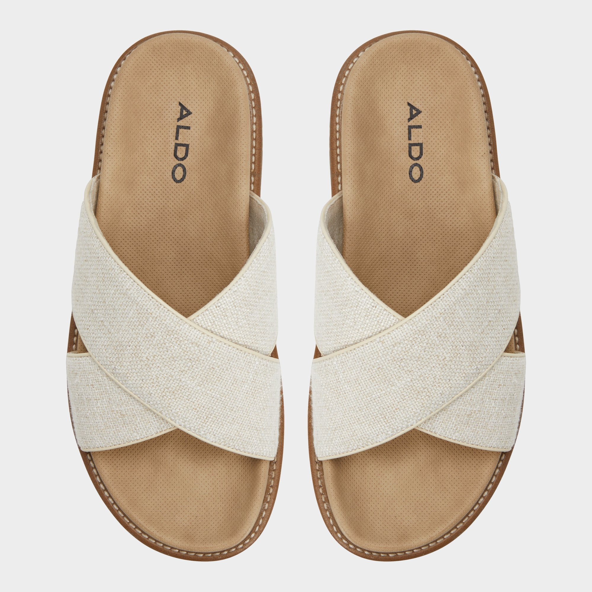 These sleek slides with with wide crossed straps will add a contemporary touch to your warm-weather wardrobe.