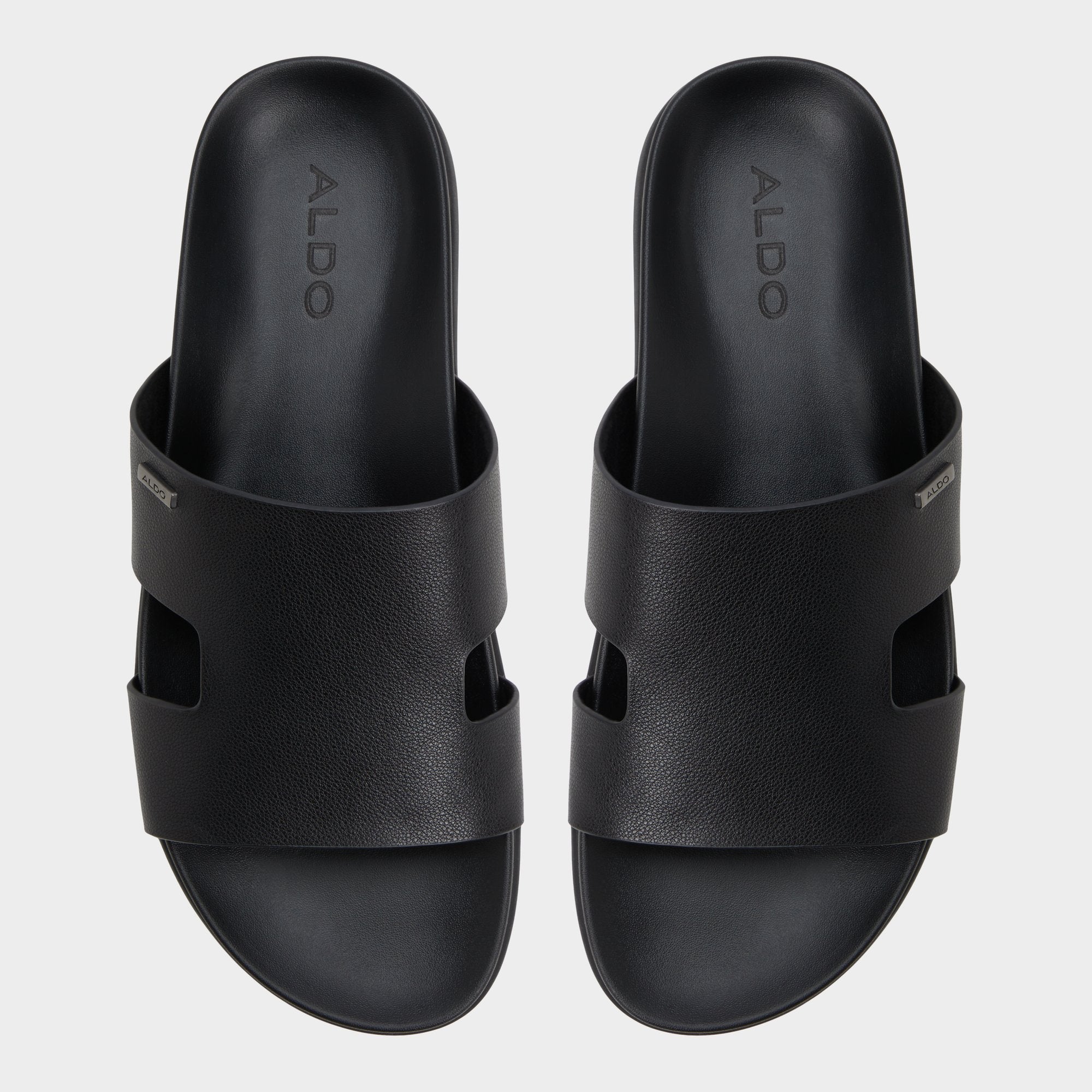 These embossed leather slides with side cutouts are perfect to keep you cool on warmer days.
