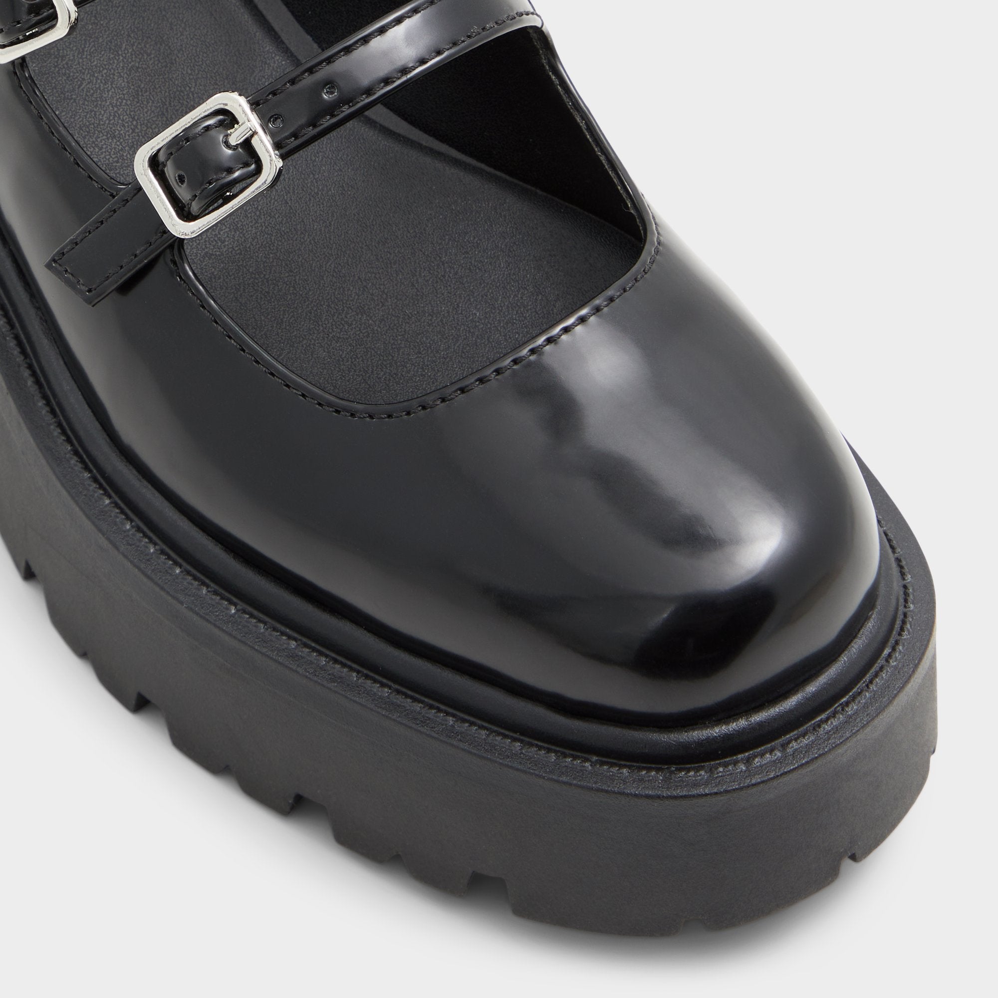 Glittering patent leather catches the light as rebellious Mary-Jane straps meet a chunky lug platform, elevating a classic silhouette with confident, cushiony steps for city miles and museum-worthy moments. Pair with pleated minis for campus presentations, or ground the look with wide-leg trousers for rooftop DJ sets and nights that demand effortless edge.