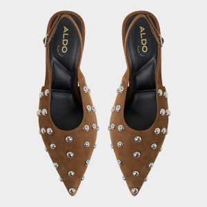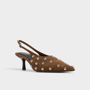 Metal-studded plush suede slingbacks fuse a sculpted kitten heel with a sharp pointed toe, turning sidewalk strides into a sly wink of rebellion while staying comfortable enough for all-day city swirls. Pair with cropped denim for day-to-night city moments, or swap in a satin midi when cocktails call.