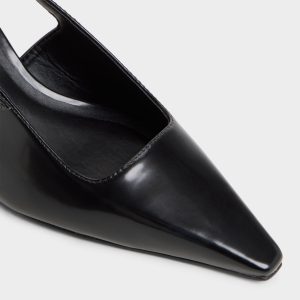 Midnight gloss leather sharpens the slingback silhouette, a gleaming gold buckle punctuating the strap as a low-set kitten heel keeps confidence effortless from desk to downtown through meetings, drinks, and quick city hops. Pair with tailored trousers for pitch meetings, or trade satin skirts for jazz-bar evenings when city lights glow.