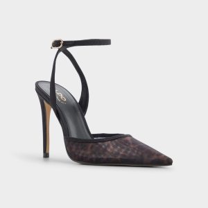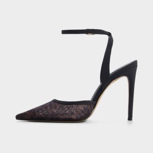 Shadowy mesh washed in subtle animal print wraps the pointy toe, while a sleek ankle strap and skyward stiletto sharpen every stride, delivering that sultry, weightless feeling the minute nightlife bar lights switch on. Pair with tailored trousers for office-into-evening plans, or anchor a slinky slip dress when rooftop celebrations edge past midnight.