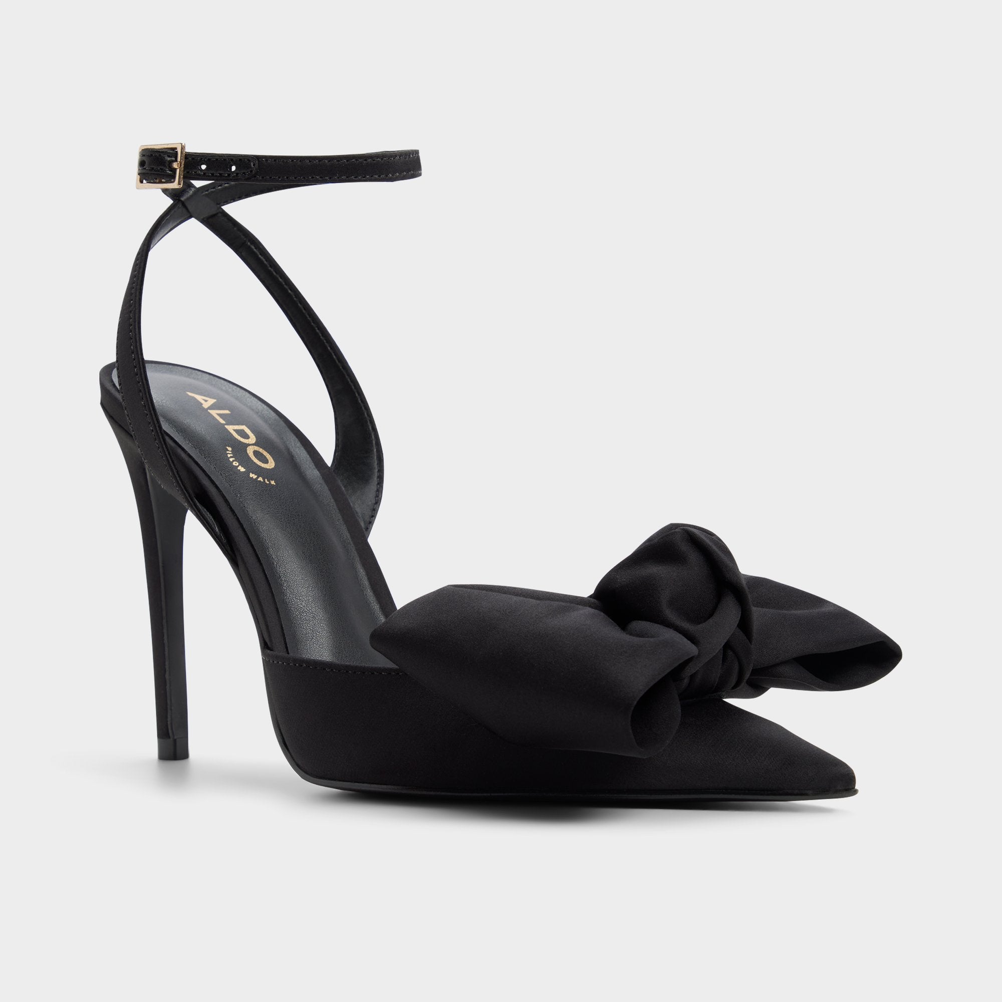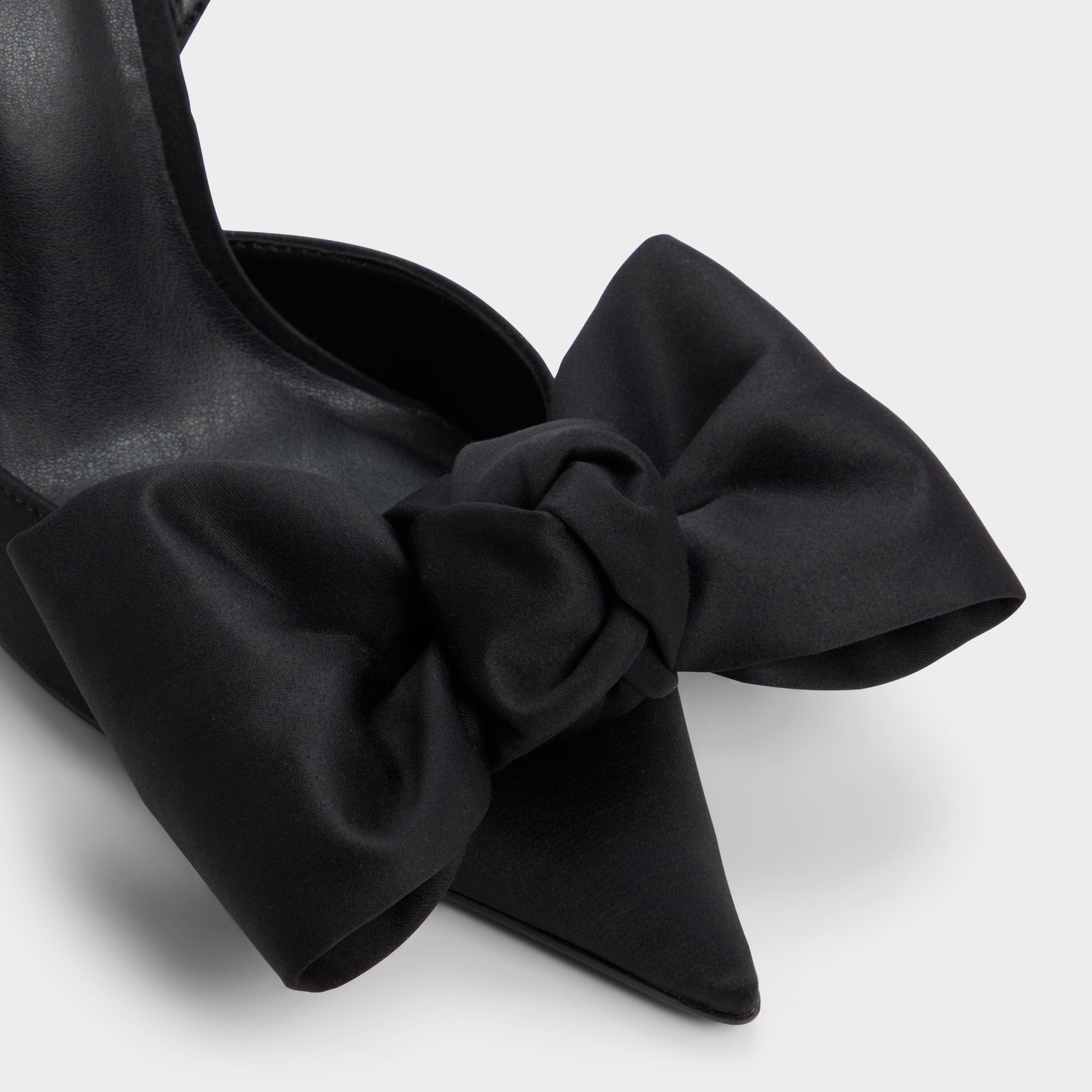 Fabric-bow drama sits above an open pointy toe, while a slender stiletto and barely-there slingback keep the silhouette light for an easy runway glide from foyer mirrors to candlelit arrivals. Pair with a sharp tux jumpsuit for gala invites, or swap into a satin slip when rooftop cocktails turn into all-night slow dances.
