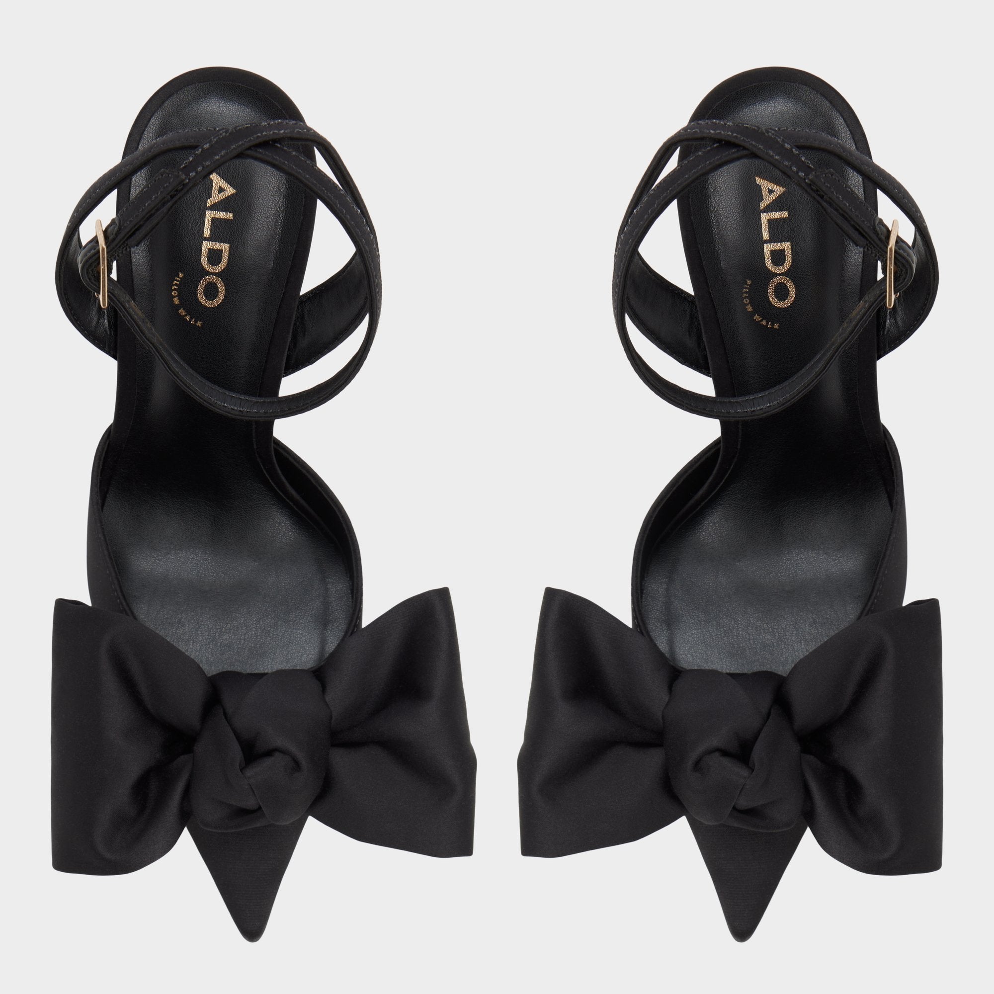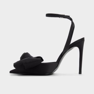 Fabric-bow drama sits above an open pointy toe, while a slender stiletto and barely-there slingback keep the silhouette light for an easy runway glide from foyer mirrors to candlelit arrivals. Pair with a sharp tux jumpsuit for gala invites, or swap into a satin slip when rooftop cocktails turn into all-night slow dances.