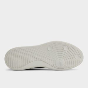 Midnight-black leather meets twin ivory stripes on this low-top, with an oversized cupsole that cushions like lounge sneakers, making city loops feel cloud-soft. Pair with cropped chinos for gallery visits or roll with joggers on flights-the contrast sole keeps style alert.