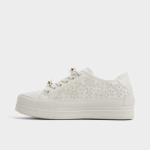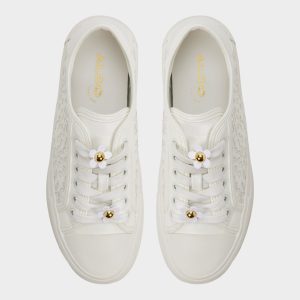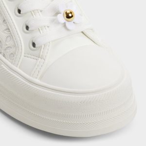 Breezy floral eyelets spill across this fresh white sneaker, accented by bloom charms on the laces while the cushy platform cupsole adds height and keeps strides lighthearted. Pair with cropped utility pants for gallery hops, or swap in a flirty sundress when patio brunch rolls into park picnics.