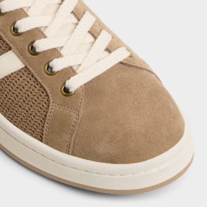 Retro side chevron stripes cut through textured beige knit and suede panels on this low-top, lending throwback energy, while a cushy cupsole and breathable lining keep long city wanderings light. Pair with cuffed light denim for patio brunches or roll with navy chinos at casual Fridays-the neutral palette works quietly hard.