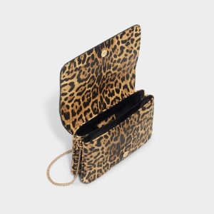 Velvety leopard spots cover this compact flap bag, buzzing with after-dark energy, while a gold chain lets it swing by your side and a snap-shut flap secures the night’s essentials. Pair it with a blazer-dressed jumpsuit for rooftop drinks, or sling it over ripped denim and tees on spontaneous gig runs.
